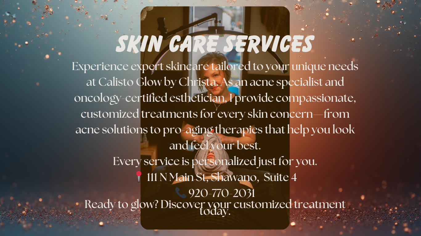 @Calisto Glow by ChristaInterested in very lucrative wholesale products for your business or becoming an affiliate with amazing earning potential? Please call or e-mail Christa at 920-770-2031 calistoglow@gmail.com